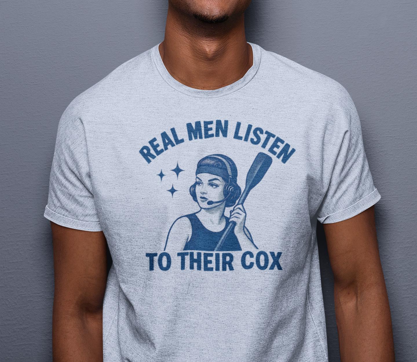 Real Men Listen to Their Cox T-Shirt Blue | Coxswain Gift | Rowing Humor | Crew Team Shirt | Rowing Gift | Cox Appreciation | Free Speed